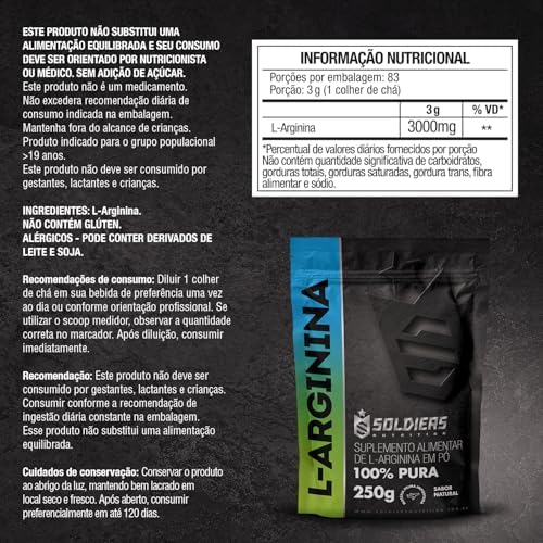 Soldiers Nutrition Arginina 250g – 100% Puro Importado