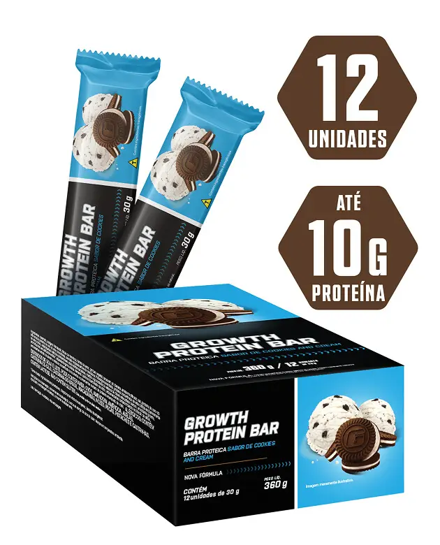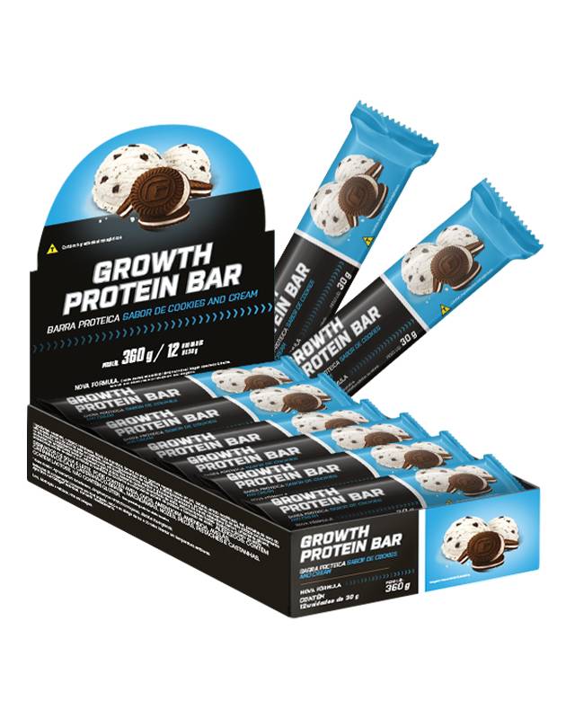 A Growth Protein Bar fornece uma boa quantidade de proteínas com alto valor biológico, possui alta quantidade de fibras, sacia a fome e fornece bons nutrientes.