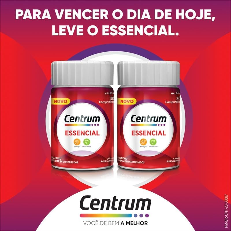 • Centrum Essencial é um suplemento alimentar diário formulado para as necessidades dos adultos, combinando vitaminas e minerais essenciais para o bem-estar diário