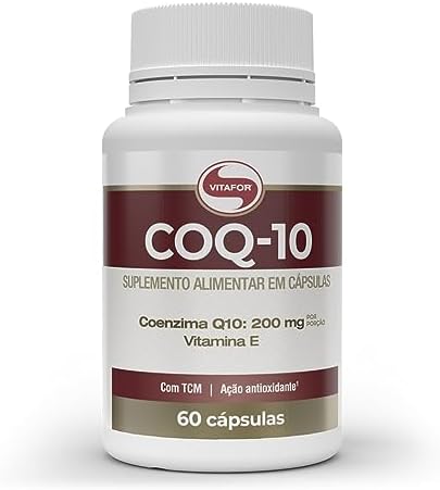 COQ-10 Vitafor é um suplemento alimentar em cápsulas, que possui 100 mg de Coenzima Q10 por cápsula. Possui como veículo em sua formulação TCM (Triglicerídeos de Cadeia Média). É enriquecido com vitamina E (DL-alfa-tocoferol) e possui corante natural de urucum.