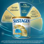 Chegou Sustagen Senior!rnrnA nova linha de Sustagen desenvolvida para adultos 50+ que buscam saúde por meio da nutrição, para viver cada momento da vida de forma plena. rnrnSustagen Senior é um complemento alimentar e foi desenvolvido especialmente para complementar a alimentação e ajudar a atender as principais carências nutricionais de adultos 50+. Sua fórmula é Fonte de Fibras e Proteínas, além de possuir uma combinação única de 26 vitaminas e minerais que auxiliam no metabolismo energético, disposição, imunidade, manutenção dos ossos e funcionamento dos músculos. Disponível na embalagem de 370g. ALÉRGICOS: CONTÉM DERIVADOS DE LEITE. PODE CONTER PEIXE E SOJA. CONTÉM LACTOSE. NÃO CONTÉM GLÚTEN.rnrnBenefícios Sustagen Senior Sabor Baunilha:rnrn rnrnrn Único fonte de fibras.¹ rn Contém 17g* de Proteínas, adicionado à 180 ml de leite, e é Fonte de Magnésio que auxilia no funcionamento muscular. rn O produto preparado conforme a recomendação, fornece 60% da recomendação diária de Cálcio e rico em Vitamina D, que contribuem para a manutenção dos ossos.2,3. rn Zinco e Vitamina C para imunidade.4 rn 26 Vitaminas e Minerais para mais energia e disposição.5rn Superioridade Nutricional nas 5 principais vitaminas e minerais que faltam na alimentação do adulto sênior.6,7. rnrnrn rnrn*Fonte de proteínas. 1Comparativo feito com base nas informações do rótulo do principal concorrente na versão sem sabor. Jan/23. 2Rico em cálcio que contribui para a manutenção dos ossos e funcionamento muscular. 3Rico em vitamina D que auxilia no funcionamento muscular e na absorção de cálcio e fósforo. 4Com Zinco, selênio e vitamina C que auxiliam no funcionamento do sistema imune.5Rico em vitaminas B1, B2, B3, B6, B12 que auxiliam no metabolismo energético. 6Comparativo feito com base nas informações do rótulo do principal concorrente. 2022. 7Fisberg RM et-al. Inadequate nutrient intake among the Brazilian elderely: National Dietary Survey 2000-2009. Rev: Saúde Pública, 2013.rnrnALÉRGICOS: CONTÉM DERIVADOS DE LEITE. PODE CONTER PEIXE E SOJA. CONTÉM LACTOSE. NÃO CONTÉM GLÚTENrnrnINGREDIENTES:rnrnLista de Ingredientes: leite em pó desnatado, maltodextrina, inulina, fosfato de magnésio dibásico, ascorbato de sódio, acetato de DL-alfa-tocoferol, niacinamida, sulfato de zinco, pirofosfato férrico, mio-inositol, sulfato de manganês, acetato de retinol, cloridrato de tiamina, sulfato cúprico, colecalciferol, D-pantotenato de cálcio, cloridrato de piridoxina, D-biotina, cianocobalamina, fitomenadiona, riboflavina, ácido fólico, cloreto de cromo, selenito de sódio e aromatizante. ALÉRGICOS: CONTÉM DERIVADOS DE LEITE. PODE CONTER PEIXE E SOJA. CONTÉM LACTOSE. NÃO CONTÉM GLÚTEN.
