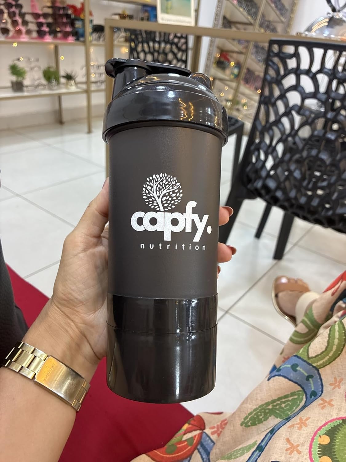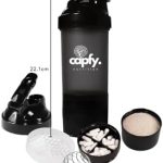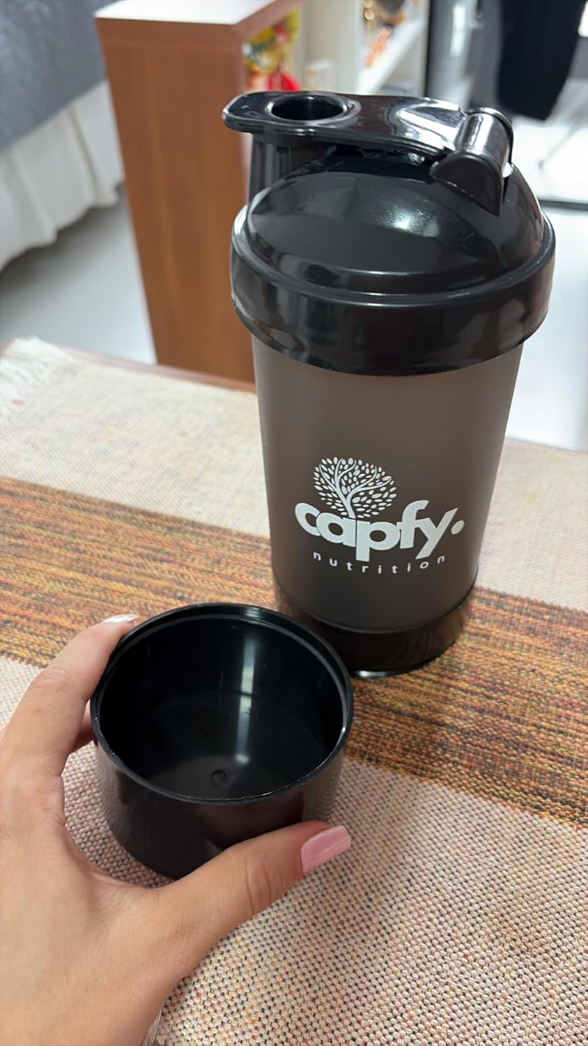 - 🏋️ Capacidade ideal de 500ml: A coqueteleira academia Capfy. é perfeita para preparar seus shakes e suplementos na quantidade certa, seja na academia ou no dia a dia.