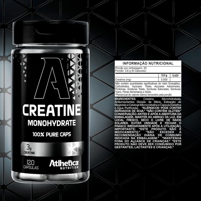 CREATINA PRO SERIES CAPS é um Suplemento de Creatina em Cápsulas para Atletas Contém3, 0g de Creatina Monoidratada na porção de 4 cápsulas.