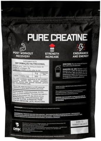 Creatina Pura 500g Dark Lab Monohidratada 100% de Pureza, Sem Sabor