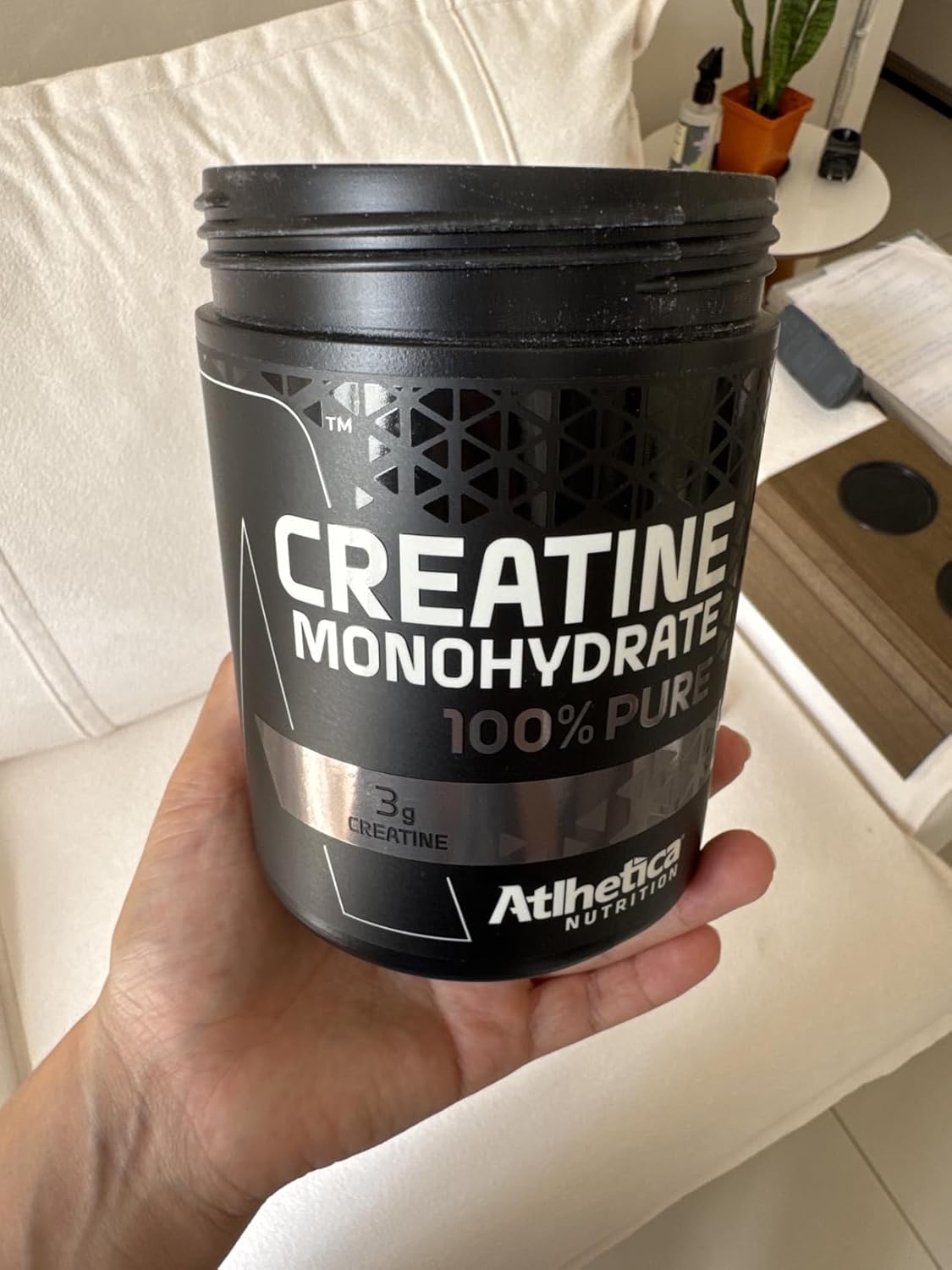 Chegou direitinho, lacrado e vem com o dosador de 3g. Ainda não tenho como dizer do efeito, pois comecei a usar essa semana e é a primeira vez que consumo creatina. Pesquisei pra achar uma marca com boa avaliação e custo beneficio!