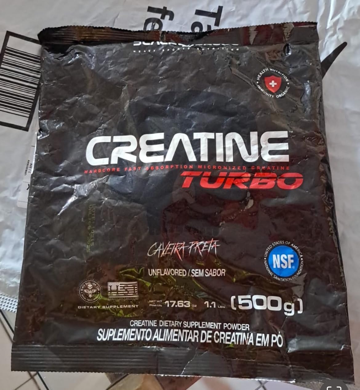 Black Skull Creatina Turbo Refil – 500g – Sem Sabor