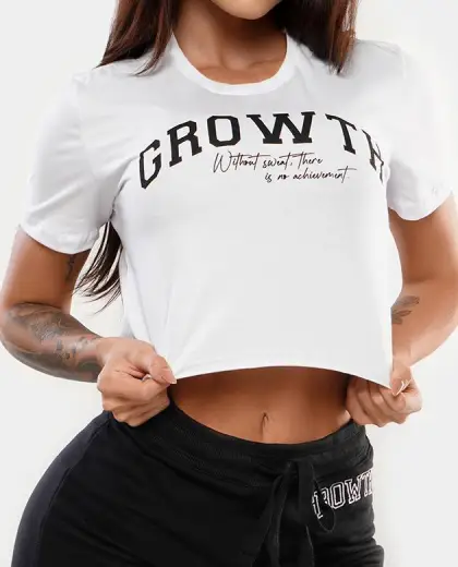 – COLEÇÃO GROWTH ATHLETICS – – CROPPED GROWTH ACHIEVEMENT BRANCO – COMPOSIÇÃO: 100% ALGODÃO 30.1 ESTAMPA EM SILK