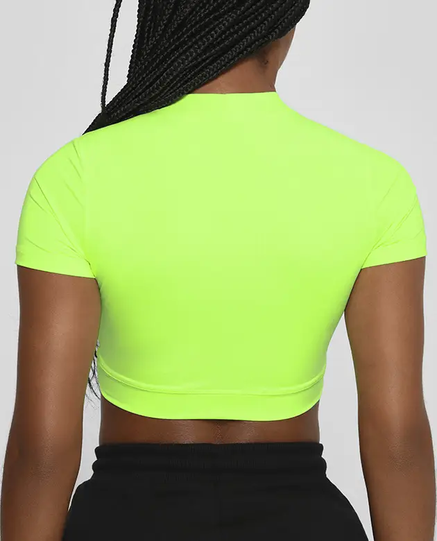 – COLEÇÃO GROWTH SENSE – – CROPPED SENSE MANUSCRITO AMARELO NEON – COMPOSIÇÃO: 88% POLIAMIDA 12% ELASTANO