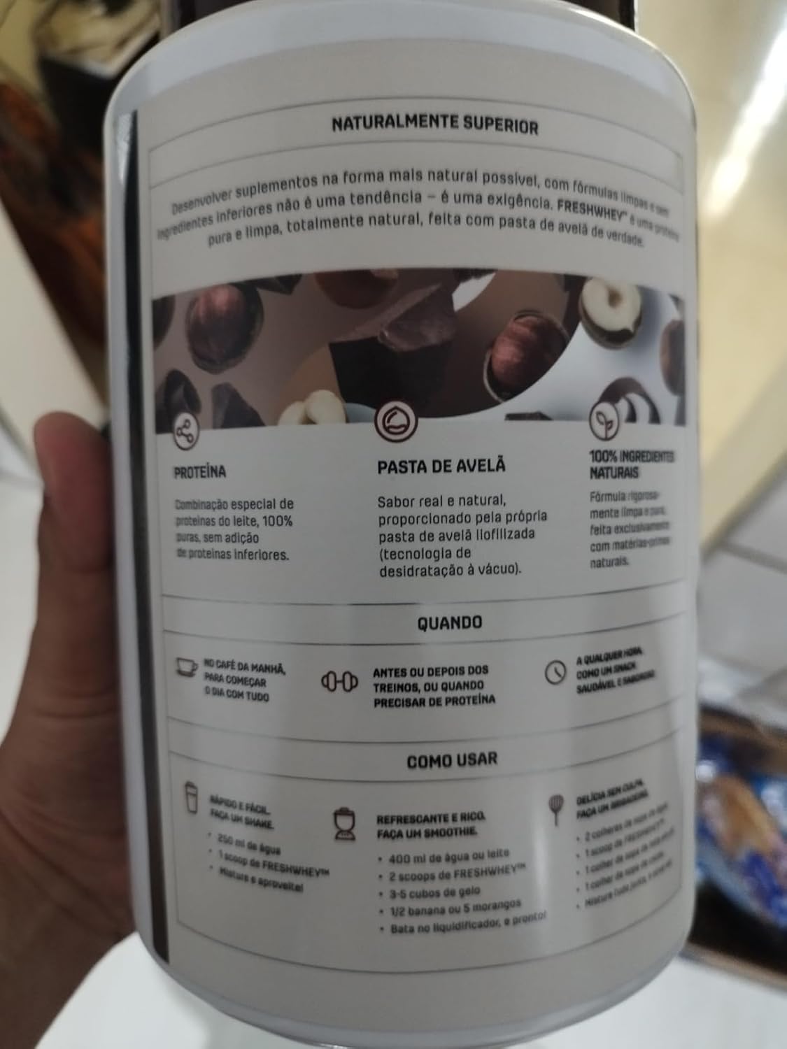 - Sabor de chocolate e avelã: fórmula desenvolvida com textura cremosa e agradável ao paladar. Torna a suplementação prática e mais fácil de incluir em hábitos alimentares variados.