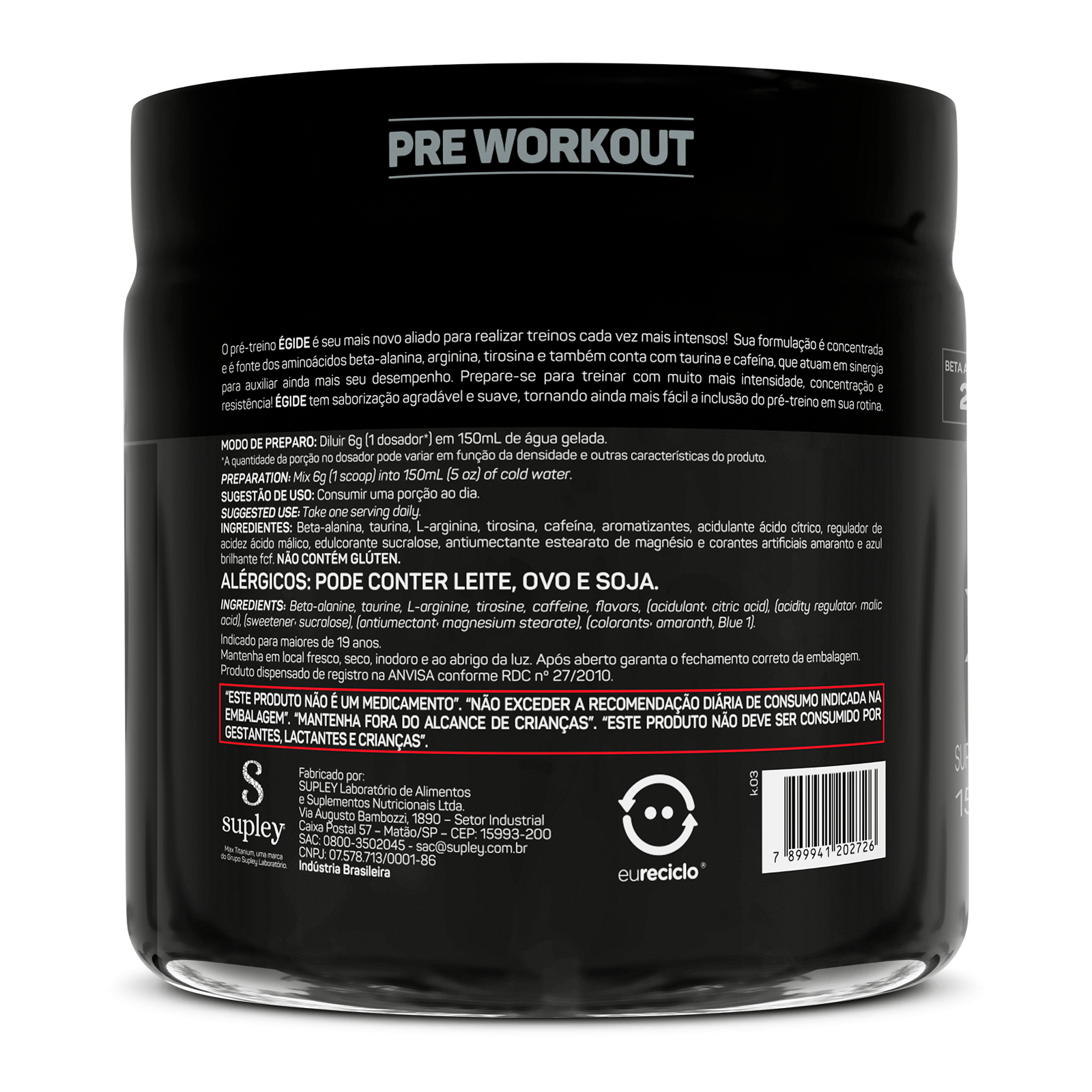 O Égide Pré-Treino da Max Titanium é um suplemento inovador formulado para quem busca maximizar o desempenho durante treinos intensos e desafiadores. Desenvolvido com uma combinação poderosa de ingredientes, o Égide atua diretamente no aumento da energia, resistência e foco, garantindo que você possa superar seus limites e aproveitar ao máximo cada sessão de treino.
