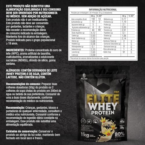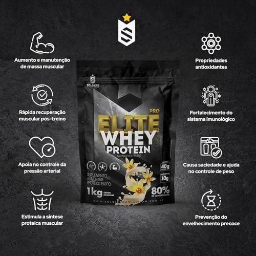 - 【ELITE WHEY PROTEIN】O Elite Whey Protein Concentrado 80% Soldiers Nutrition é produzido com proteína concentrada do soro do leite importada de alta qualidade 100% pura, em fórmula com alta concentração proteica.