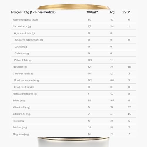 - NÃO CONTÉM: Proteínas do leite, Derivados de soja, Adoçantes artificiais, Açúcar, Glúten, Lactose, Conservantes, Aromas artificiais, Corantes artificiais