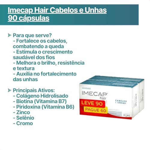 Imecap Hair Leve 90 cápsulas, Pague 60 – Vitaminas para Cabelos e Unhas com Biotina