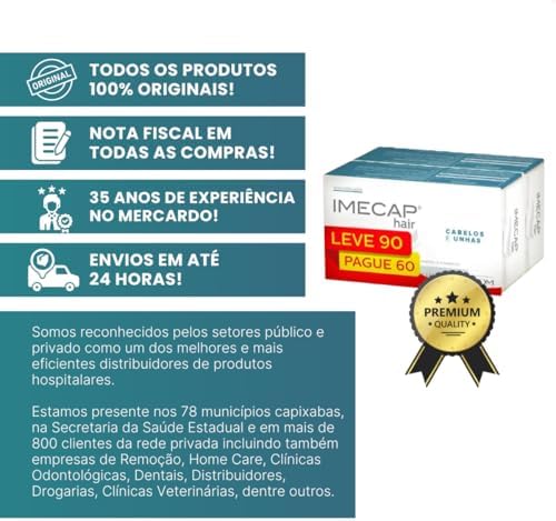 Voltei com mais de 3 meses para avaliar esse produto que eu achava puro marketing de comercial de TVTive uma queda importante de cabelo pós parto e comecei a tomar o imecap comprado em uma promoção aqui na Amazon. Me surpreendi, meu cabelo parou de cair e estou com cabelos novos nascendo e super brilhoso ! detalhe é que meu cabelo nunca teve brilho antes, unhas fortes também !! Perfeito e baratinho