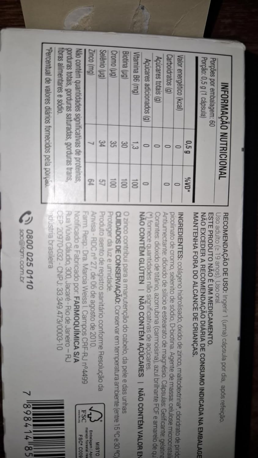 O produto chegou antes do previsto, a caixa um pouco amassadinha, mas sem afetar as cápsulas. Estou tomando a 9 dias e sinto que minhas unhas estão parando de escamar e tb está sumindo uns riscos verticais que apareciam nelas. Recomendo o uso!