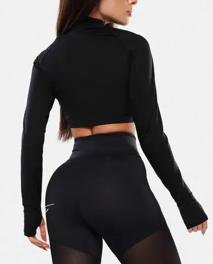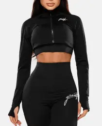 - COLEÇÃO GROWTH FINE - - JAQUETA CROPPED GROWTH MANUSCRITO PRETO - COMPOSIÇÃO: 92% POLIAMIDA 8% ELASTANO