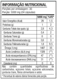- Cada porção fornece 1.407 mg de ômega 3, incluindo 1.328 mg de ALA, 47 mg de EPA e 31 mg de DHA