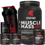Kit Muscle Mass 1,8kg + BCAA + Creatina + Glutamina + Pré Treino Frutas Vermelhas + Coqueteleira