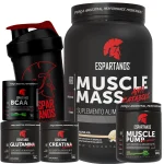Kit Muscle Mass 1,8kg + BCAA + Creatina + Glutamina + Pré Treino Limão + Coqueteleira