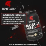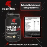 Muscle Mass fornece por dose 20g proteínas de alto valor biológico e diferentes níveis de absorção, contém também 125g de carboidratos complexos de rápida e lenta absorção deixando assim o atleta em estado anabólico por muito mais tempo. Muscle Mass é um hipercalórico completo com alto teor de aminoácidos de cadeia ramificada Bcaa’s e não contém gluten, combinação perfeita para o ganho de massa muscular com um sabor incomparável. Itens Inclusos: 1 Potes Muscle Mass Anti-Catbolic Espartanos 1800G