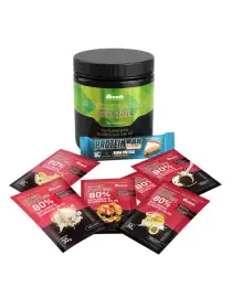 Kit Sabores: Protein Bar 30g Display C/ 12 UN + Creatina Monohidratada 250Gr + Dose 30Gr Whey Protein Concentrado 80% - Chocolate C/ Amendoim + Banana + Caramelo + Mousse De Maracujá + Cookies + Baunilha