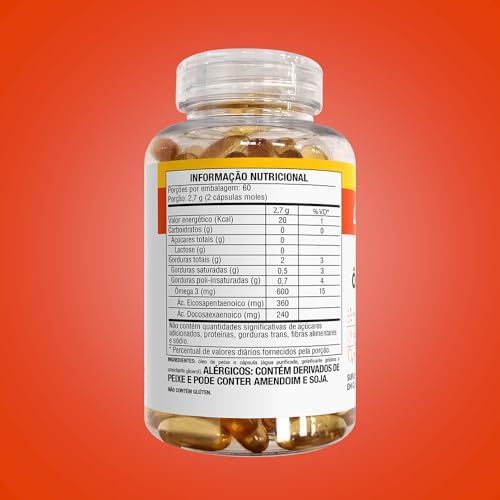Suplemento alimentar rico em ômega 3 com dosagem de 1000mg por cápsula. O Ômega 3 auxilia na manutenção da saúde do coração, reequilíbrio do colesterol ruim e triglicerídeos.