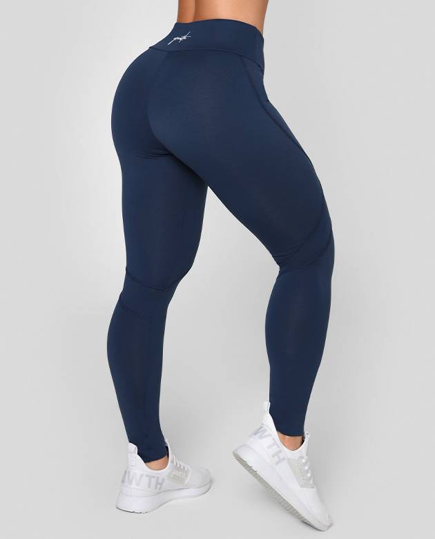 COLEÇÃO FEMININA GROWTH - - LEGGING AZUL MARINHO GROWTH CUT MANUSCRITO - GROWTH SUPPLEMENTS - DESCRIÇÃO LEGGING COM TRAÇADOR EM POLIAMIDA COM FORRO E DETALHE COM LOGO MANUSCRITA. TODOS OS TECIDOS DAS NOSSAS COLEÇÕES.