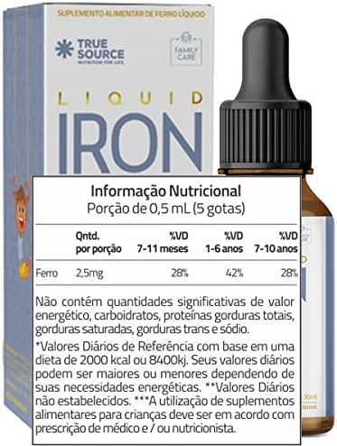 Liquid Iron Plus Baby Kids (Ferro) 30 ml – True Source é um suplemento alimentar infantil em gotas, formulado com ferro de alta qualidade e com delicioso sabor morango, pensado para tornar a suplementação prática e agradável.