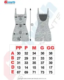– COLEÇÃO FEMININA GROWTH – – MACAQUINHO GROWTH DETALHE COSTAS C/TIRA CINZA MESCLA – COMPOSIÇÃO DA PEÇA: 88%POLIAMIDA 12%ELASTANO