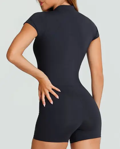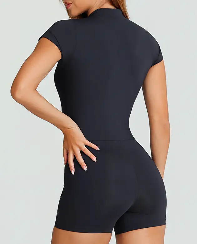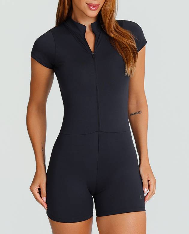 Macaquinho Growth Manga Curta Ziper Frontal Preto