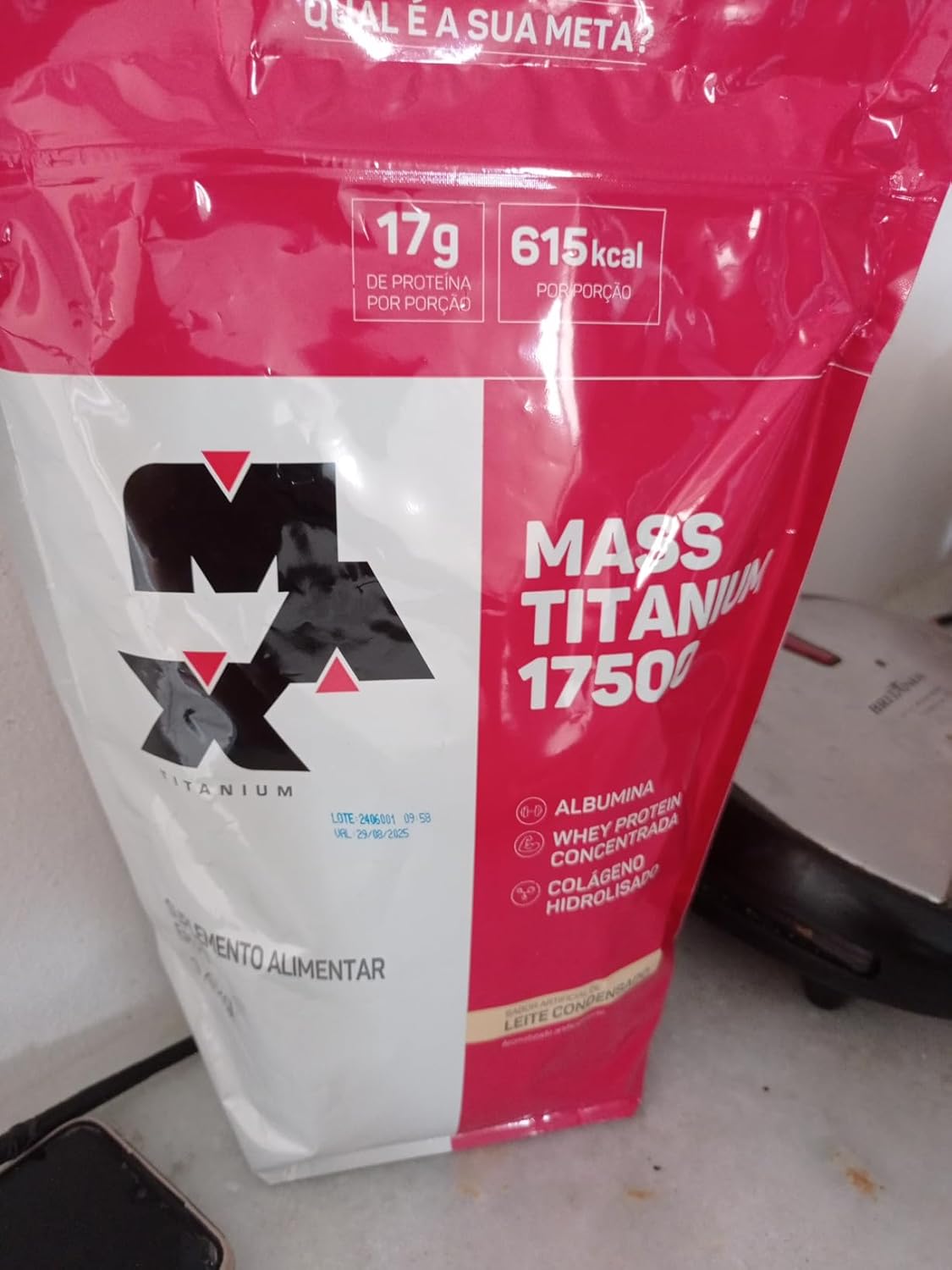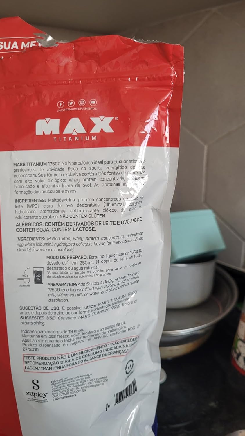 MASS TITANIUM 17500 conte? m em sua fo? rmula exclusiva tre? s tipos de protei? nas com alto valor biolo? gico: Whey protein concentrada, cola? geno hidrolisado e albumina do ovo. Os hipercalo? ricos sa? o indicados para pessoas que te? m o metabolismo muito acelerado e que querem ganhar peso