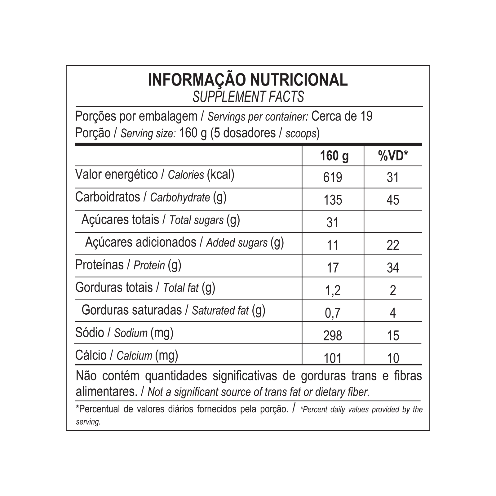Além do carboidrato, o hipercalórico conta com uma porção de proteínas de alto valor biológico, que também irá auxiliar na ingestão diária deste nutriente.