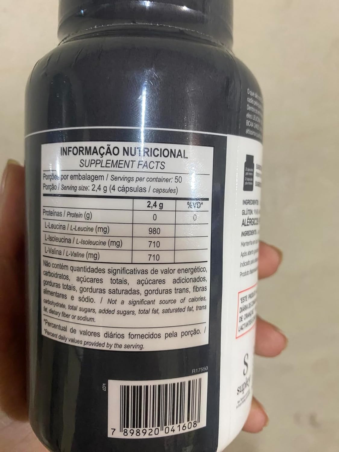 L-Leucina*, L-Isoleucina*, L-Valina* e cápsula (gelatina).