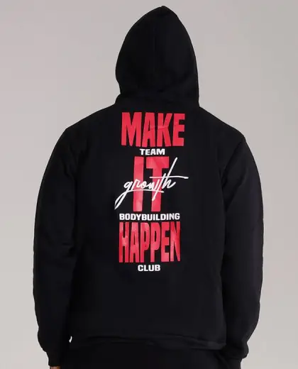 – COLEÇÃO GROWTH MOTIVATION – – MOLETOM PRETO MAKE HAPPEN – COMPOSIÇÃO MOLETOM 3 CABOS 350gm² ESTAMPA FEITA EM PROCESSO SILK.