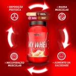 Entre os principais benefícios estão: Ganho de massa muscular, aumento de força, recuperação muscular, manutenção da massa magra e aporte proteico para dietas com foco em emagrecimento. MY WHEY também pode ser consumido á qualquer momento do dia com benéfico de proporcionar aumento de saciedade.