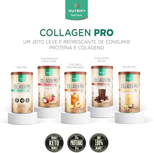 - Quem disse que suplemento proteico precisa ter gosto e textura de leite? Collagen Pro vem para inovar a maneira de suplementar proteína. Disponível em 2 versões: Com textura e sabor delicado de chá: -Neutro: Pode ser adicionado a frutas, smoothies, cafés e diversas preparações doces e salgadas. -Chá mate com pêssego e chá branco com lichia: Podem ser consumidos gelados ou quentes e adicionados a smoothies e frutas.