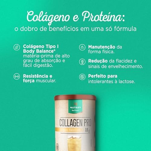 - De fácil digestibilidade e ótima absorção, COLLAGEN PRO NUTRIFY é formulado com os peptídeos bioativos de colágeno BODY BALANCE, matéria-prima de alta pureza e tecnologia. Uma excelente forma de aumentar a ingestão de proteína.