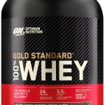 • PROTEÍNA WHEY. Gold Standard oferece 24 g de proteina de soro (WHEY) em um cremoso sabor baunilha. Este potenciador de proteínas é ideal para atletas e adultos em movimento, pois ajuda na recuperação muscular e na energia antes ou depois do treino.
