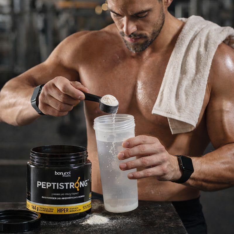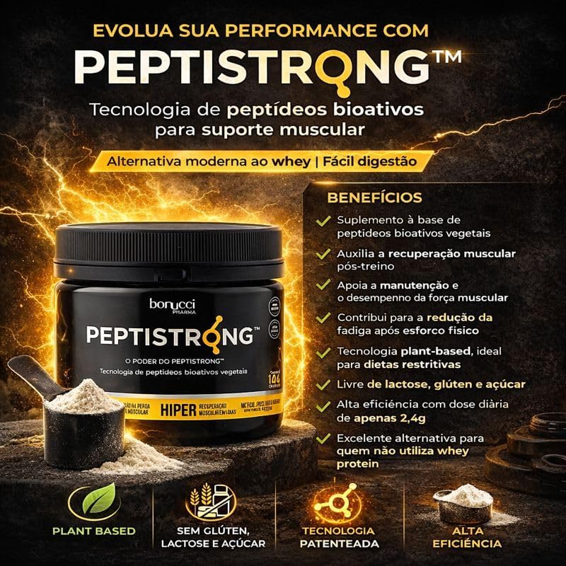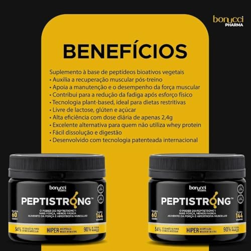 Bonucci Pharma PeptiStrong 144g 60 Doses Peptídeo Bioativo Plant Based Força Muscular Recuperação Pós Treino