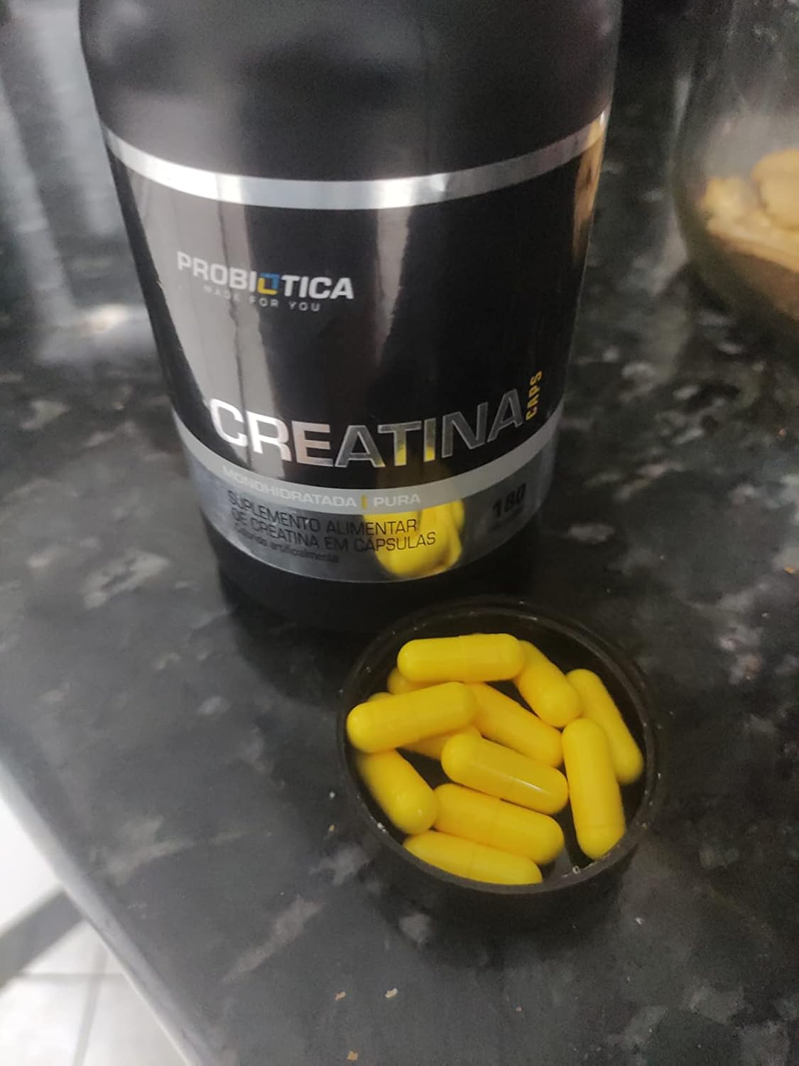 Cápsulas fáceis de engolir, muito mais prático do que a creatina em pó.