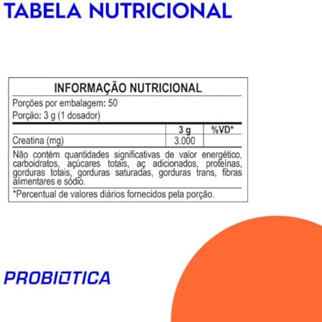 A CREATINA Probiótica, traz o aminoácido creatina na concentração e pureza da exclusiva tecnologia alemã CREAPURE. A CREATINA auxilia no aumento do desempenho físico durante exercícios repetidos de curta duração e alta intensidade, além de ajudar a complementar os estoques endógenos de creatina.