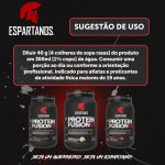 SUGEST�O De Uso Protein Fusion: Diluir 40 gramas ( um dosador e meio) de Protein Fusion em uma coqueteleira com 200ml de �gua ou bebida de sua prefer�ncia. Consumir uma vez ao dia, preferencialmente ap�s o treino ou de acordo com orienta��o de um profissional. nutricionista.
