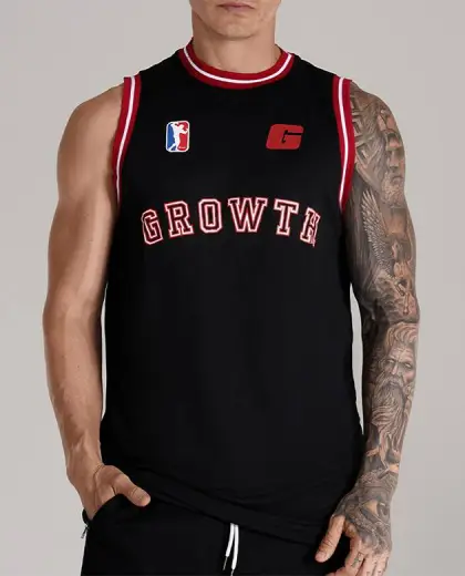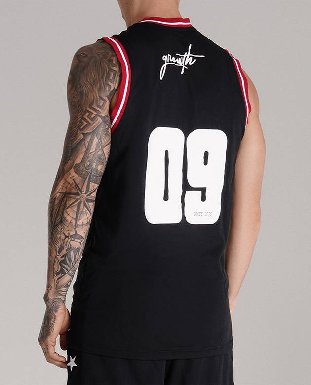 Regata Basquete Preta Logo Vermelho Growth Desde 2009