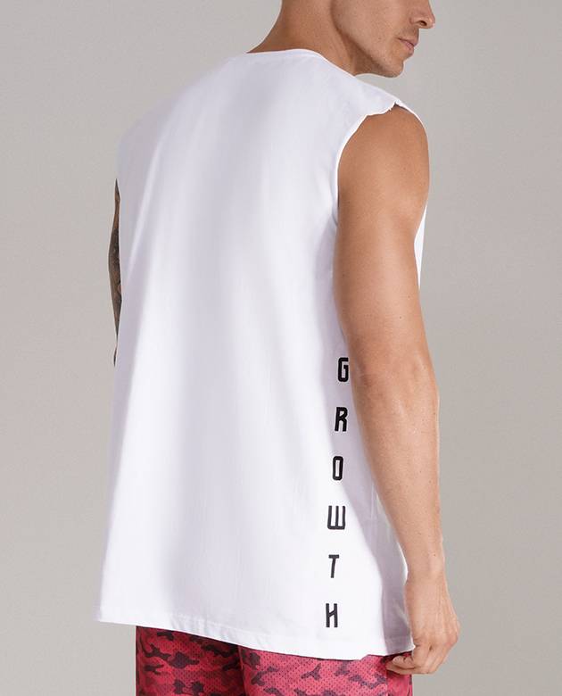– COLEÇÃO GROWTH SPORTS- -REGATA MACHÃO GROWTH UNDER BRANCA – COMPOSIÇÃO 100% ALGODÃO – FIO 30.1 ESTAMPA FEITA EM PROCESSO SILK.
