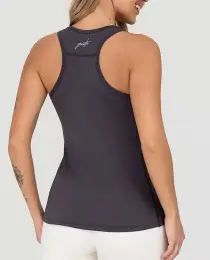 Com recortes que valorizam a silhueta e costas em modelo nadador, é a peça ideal para práticas esportivas ao ar livre, proporcionando frescor e mobilidade em cada atividade.