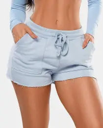 COLEÇÃO GROWTH FEMININA - - SHORT MOLETOM AZUL BEBE GROWTH FINE - DESCRIÇÃO SHORT CONFECCIONADO EM TECIDO 3 CABOS SEM FELPA MODELAGEM BÁSICA COM BOLSOS COM DETALHE BORDADO E BARRA À FIO AJUSTE DE CORDÃO BORDADO.