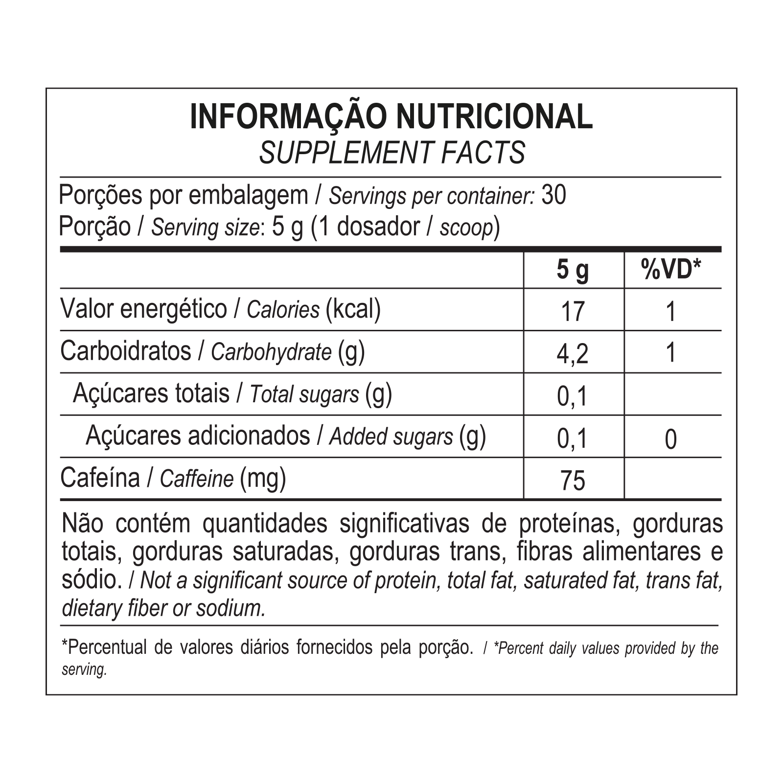 nAlém de extremamente saboroso, o blend contém cafeína que auxilia no aumento do estado de alerta e na melhora da concentração, e possui menos de 20kcal por dose.