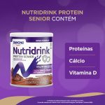 O amadurecimento saudável é essencial para manter uma vida ativa e plena. Nutridrink Protein Senior sabor chocolate é um aliado importante para apoiar seu bem-estar diário. Muitas pessoas não consomem a quantidade necessária de proteínas, vitamina D e cálcio em suas dietas, o que pode afetar a saúde e a qualidade de vida4-8. Nutridrink Protein Senior possui 25g de proteínas em duas porções diárias, misturadas em 180 ml de leite desnatado, que ajudam na manutenção e recuperação muscular, essencial para manter a força e a vitalidade7-8.  rnrnNutridrink Protein Senior sabor chocolate possui em sua formulação cálcio e zinco, nutrientes indispensáveis para ossos fortes e saudáveis4-8. Tem baixo teor de gorduras totais**, tornando-se uma escolha saudável para o seu dia. Sua fórmula nutritiva e saborosa é ideal para quem busca uma nutrição completa e deliciosa. rnrnCom os nutrientes presentes em Nutridrink Protein Senior sabor Chocolate, você garante uma nutrição completa que contribui para mais disposição1-3, força1-3 e imunidade3-5, promovendo um amadurecimento ativo e saudável. rnrn rnrnCaracterísticas: rnrn- 25g de Proteínas por Porção*: Ajuda na manutenção e recuperação muscular, essencial para manter a força e vitalidade4-8. rnrn- Possui em sua formulação Cálcio e Zinco: Nutrientes indispensáveis para ossos fortes e saudáveis. rnrn- Baixo Teor de Gorduras Totais: Uma escolha saudável para o seu dia. rnrn- Sabores Deliciosos: Disponível nos sabores Chocolate e Café com Leite rnrnModo de Preparo: rnrnAdicione 3 colheres de sopa (30g) em 180 mL de leite desnatado, misturando até ficar homogêneo. rnrnIngredientes rnrnLeite em pó desnatado, maltodextrina, leite em pó integral, proteína de soro de leite isolada (whey protein), cacau em pó, ácido ascórbico (vitamina C), sulfato de zinco, colecalciferol (vitamina D3), aromatizante, edulcorantes sucralose e glicosídeo de esteviol. rnrn*Vitalidade está associada ao consumo de nutrientes que contribuem com o ganho de força, disposição e imunidade presentes na formulação de Nutridrink, junto a uma rotina de hábitos saudáveis. *25 g de proteínas na sugestão de consumo de 2 porções/dia, preparada com 180 mL de leite desnatado. **Este não é um alimento baixo ou reduzido em valor energético. rnrnO PRODUTO MENCIONADO NÃO CONTÉM GLÚTEN. Consulte sempre seu médico e/ou nutricionista. rnrnReferências rnrn1. Bauer, J Et al Evidence-Based Recommendations for Optimal Dietary Protein Intake in Older People: A Position Paper From the PROT-AGE Study Group. JAMDA 14 (2013). 2. Cruz-Jentoft AJ, Sayer AA. Sarcopenia. Lancet 2019 ; Jun 29; 393(10191): 2636-2646. 3. Paddon, J et al. Dietary recommendations and the prevention of sarcopenia: Protein, amino acid metabolism and therapy. Curr Nutr Metab Care 2009 12 1 86 90 4. Diretriz Braspen dev Terapia Nutricional no Envelhecimento BRASPENJ 2019 34 (Supl 3) 2-58. 5. Vannucchi H, Rocha MM, Takeuchi PL. Funções Plenamente Reconhecidas de Nutrientes - Vitamina C / ILSI Brasil, 2018.  6. Giudici KV, Peters BSE, Martini LA. Funções Plenamente Reconhecidas de Nutrientes - Vitamina D / ILSI Brasi, 2018. 7. Cominetti Z, Reis BZ, Cozzolino SMF. Funções Plenamente Reconhecidas de Nutrientes - Zinco / ILSI Brasil, 2017. 7. Brandão CFC, et al. Funções Plenamente Reconhecidas de Nutrientes - Proteína / ILSI Brasil, 2019. 8. França NAGF, Martini LA. Funções Plenamente Reconhecidas de Nutrientes - Cálcio / ILSI Brasil, 2018.