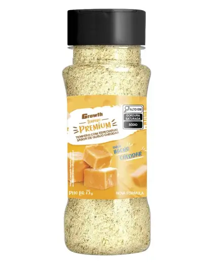 Os temperos de nacho cheddar e cheddar branco da Growth Supplements possuem uma composição única. Contando com cebola em pó e queijo em pó, o tempero é ideal para complementar suas receitas. Por não conter glúten, é possível fazer sua inserção em dietas com restrição ao ingrediente, de acordo com a recomendação de um nutricionista.