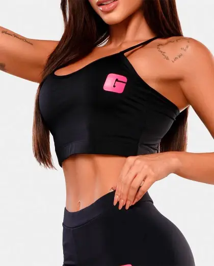 COLEÇÃO FEMININA GROWTH - - TOP PRETO G ROSA - DESCRIÇÃO TOP ALÇA EM POLIAMIDA COM FORRO E DETALHE EM ESTAMPA. TODOS OS TECIDOS DAS NOSSAS COLEÇÕES OFERECEM ALTA QUALIDADE EM TECNOLOGIAS QUE AUXILIAM NA PERFORMANCE E.